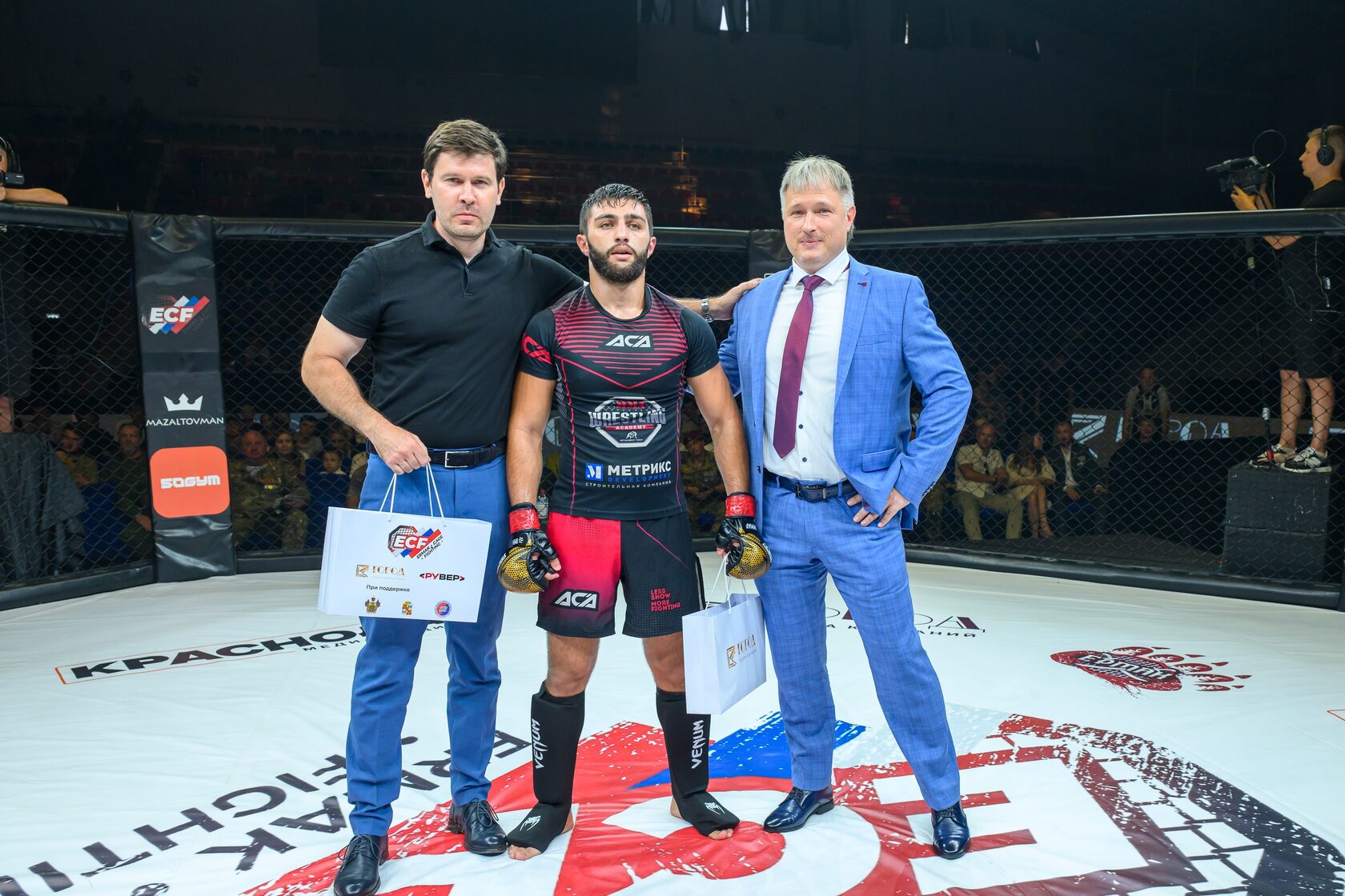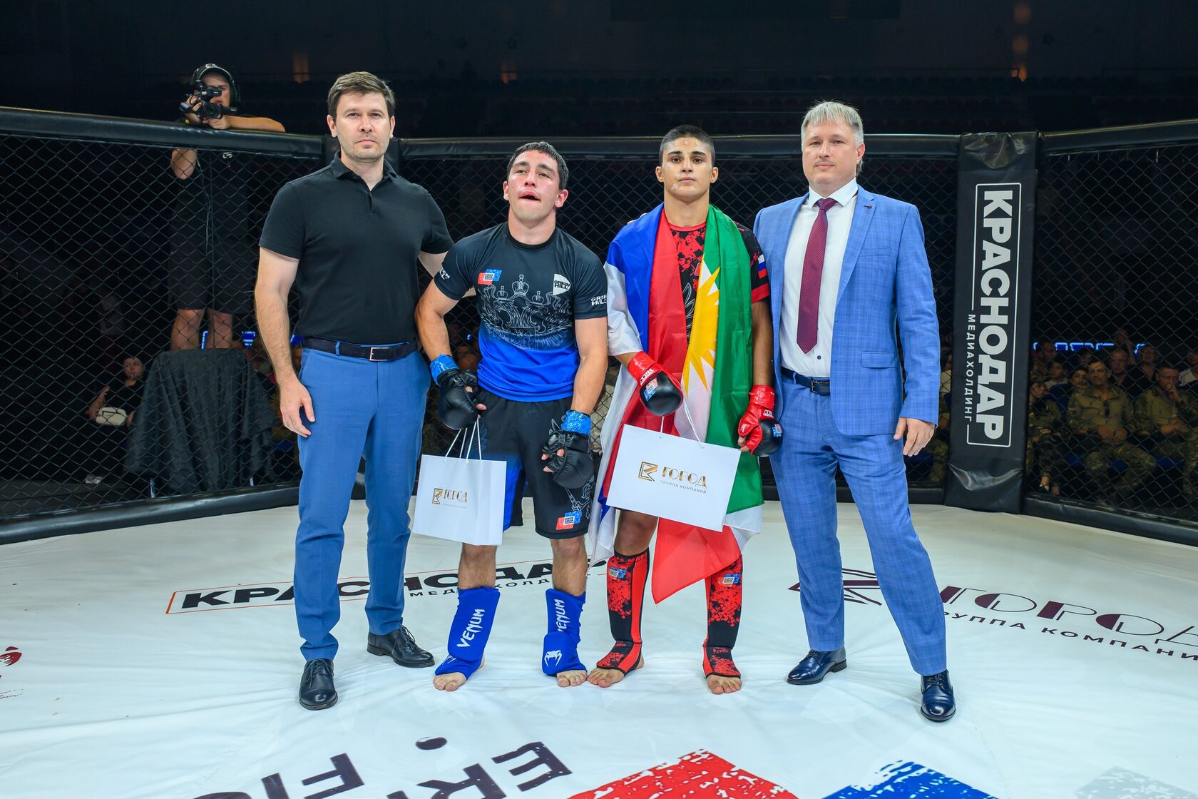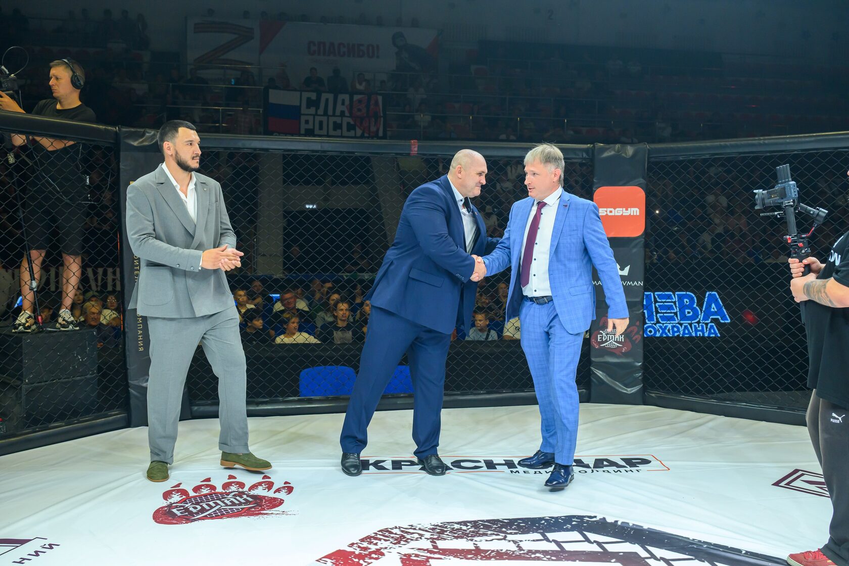 А в 18:00 в самом дворце спорта стартовал пятый турнир по смешанным единоборствам профессиональной лиги Ермак, посвященный участникам СВО! Это мероприятие ГК «ГОРОД» провели совместно с Администрацией Краснодарского края и г. Краснодар, Федерацией Союза ММА Краснодара и Ассоциацией Ветеранов СВО по Краснодарскому краю.